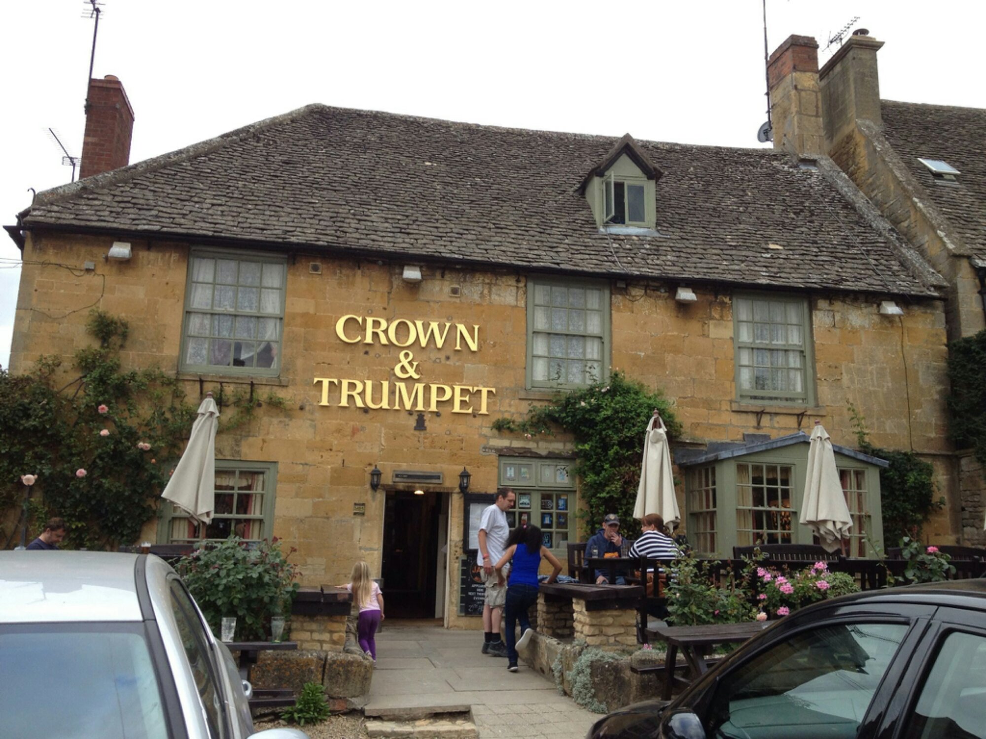 Broadway does have the best pub I’ve found, the 17th century Crown and Trumpet (Broadway Artists ale), which currently holds my wife’s endorsement for best fish-and-chips. The people were friendly, service was efficient, and the rhubarb (locally sourced) cobbler with hot custard was worth the 12 mile walk. Plus that little sprig of plastic flowers on the table turned out to be real!