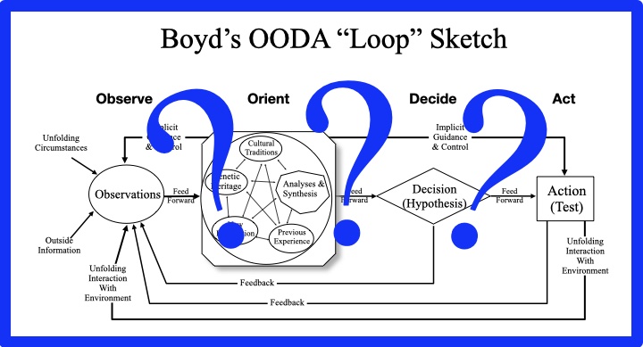 If it meant “Observe, then orient, then decide, then act,” there would be no need for further explanation, other than defining the terms. The fact that we’re talking about TEoWL suggests Boyd had something else in mind.